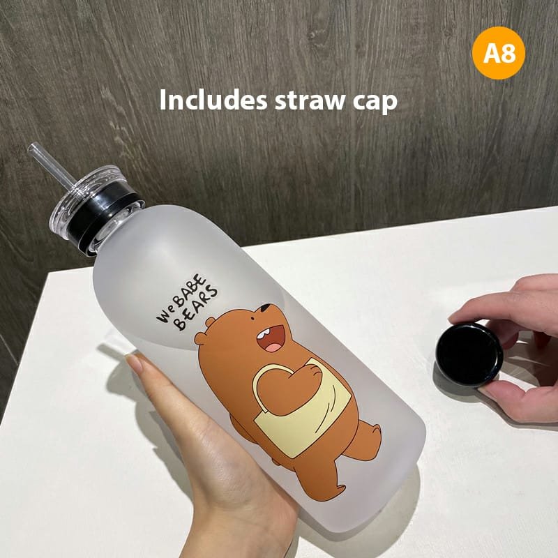 The water bottle is so cute and unique. Simple,fashion and convenient to carry. Food grade PP material, safe and non-toxic, BPA free. The cup is reusable. And designed with straw,easy to drink. You can use it for coffee,milk tea,juice,beverage and so on. Perfect birthday gift. Color: Transparent, frosted Size: 23*8cm Material: Food grade PP