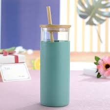 Glass Tumbler with Bamboo Lid Bamboo Straw and Silicone Cover High Temperature Resistant Tea Cup Juice Glass Milk Water Cup Drinkware