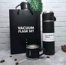 • The Steel Vacuum Flask Set with 3 Stainless Steel Cups is an excellent choice for outdoor activities and the winter season. It is designed to keep your drinks hot or cold for hours, making it perfect for long trips.